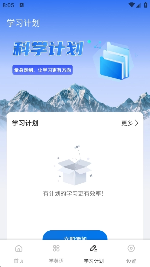 3、在学习计划页面,您可以即刻添加各类学习计划,并且能够快速完成定制。