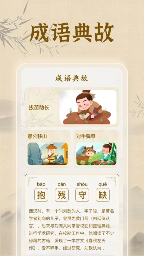 不倦成语是一款超棒的手机软件,专门用来学习和积累成语。它里面有海量的成语资源,每个成语都有详细解析。还具备多种有趣的学习功能,能让用户轻轻松松就掌握成语知识。有了它,提升语言表达能力不再难,成语学习变得简单又好玩,绝对是成语爱好者的优质选择,赶紧用起来!