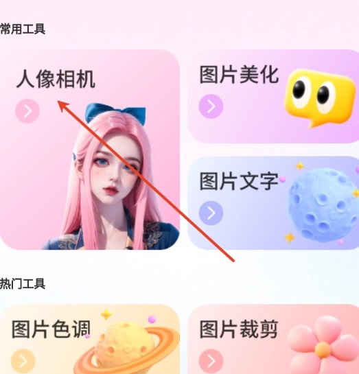 1、用户需要前来此处,并且能够直接进入首页找到“人像拍照”功能。