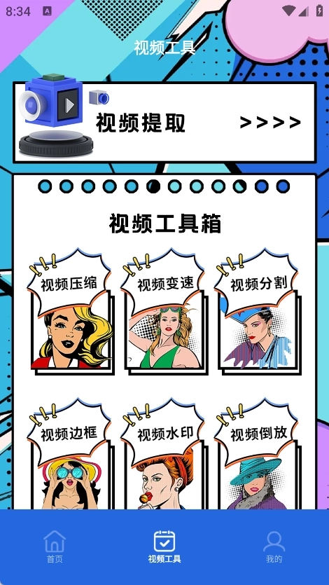 2、视频工具具备视频提取、视频压缩、视频变速、视频分割、视频边框、视频水印和视频倒放等功能。