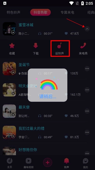 6、点击右侧的小括号,选择“设铃声”选项,稍作等待就能完成啦!