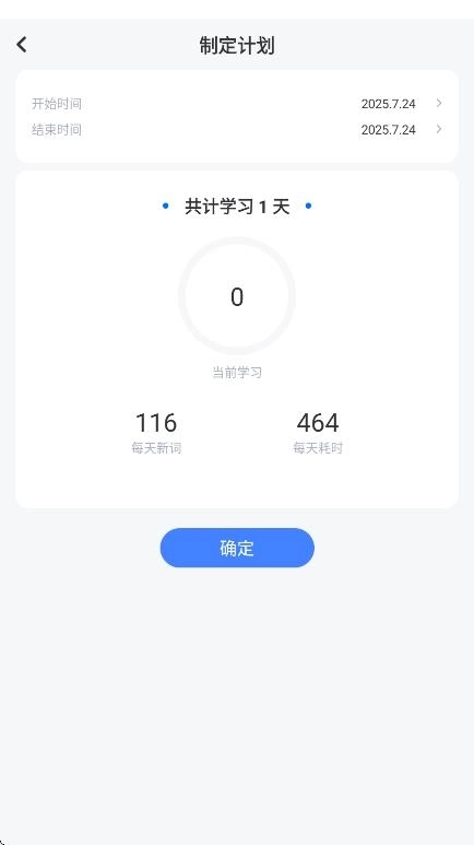 2、点击开始按钮,即可制定专属的单词背诵计划,并按时完成打卡。