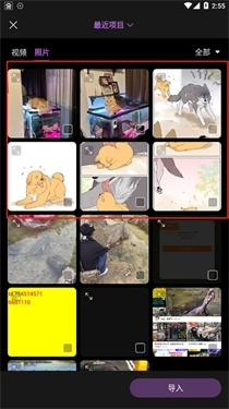 2、选择手机里自己想要编辑的图片后点击导入。
