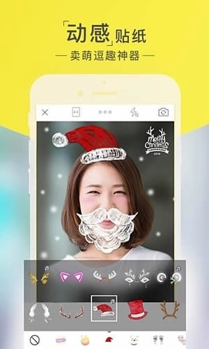 各种搞趣动态贴纸,智能人脸识别,长按拍照键还可以录制短视频