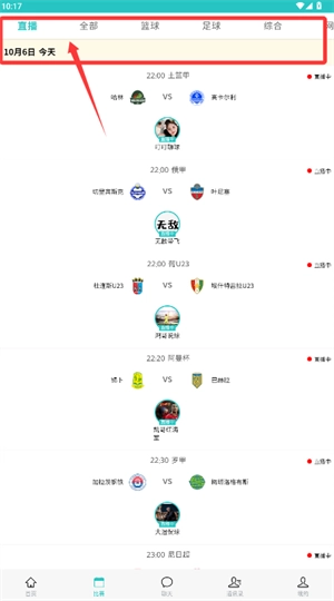 进入赛事列表页面后,您可以通过切换顶部的分类标签,筛选出自己感兴趣的比赛场次。