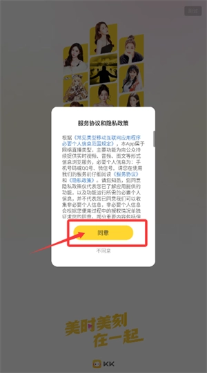 首次打开应用程序时,请认真阅读用户协议和隐私条款,并点击同意按钮。