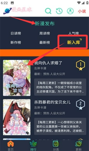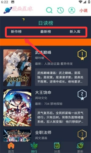 可以去新漫入库的区域看看,选几部最近上新的漫画来读,开启阅读体验。