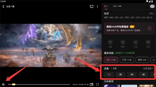 4、跳转至播放页面后,不仅能够欣赏正片,还可以通过选集功能来切换剧集。