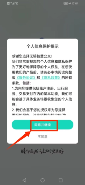 首次打开应用时,请在弹出的个人信息提示窗口中点击“同意并继续”。
