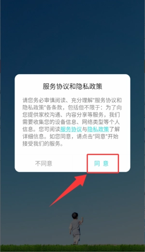1、打开应用后,在服务协议弹窗中点击同意,即可进入账户注册登录页面。