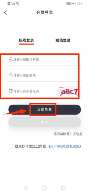 1、进入应用登录界面,输入账号密码及验证码登录。