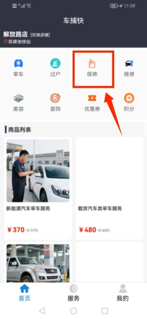 2、首页选择保养选项,进入相关服务页面。