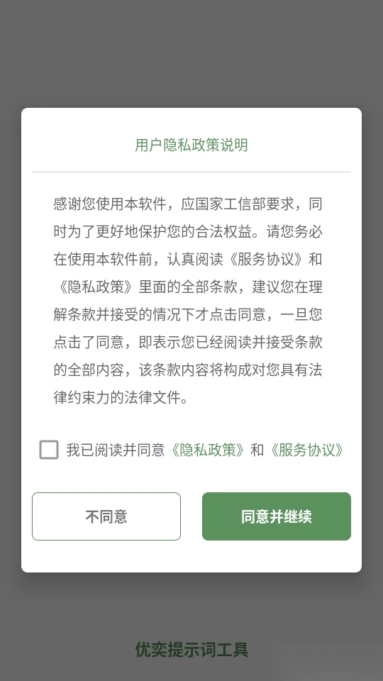 首先打开软件,阅读“用户隐私政策说明”后,点击“同意并继续”按钮进入应用。