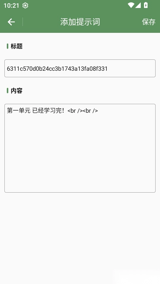 之后用户就能查看导入的TXT文件的“标题”和“内容”,点击右上角的“保存”按钮,添加操作就完成了。