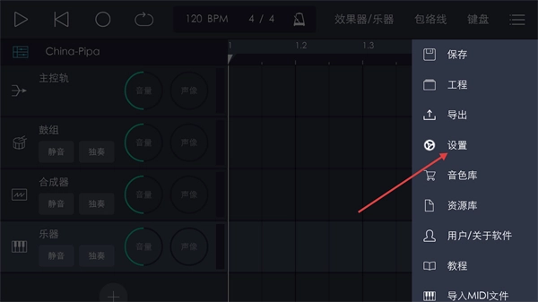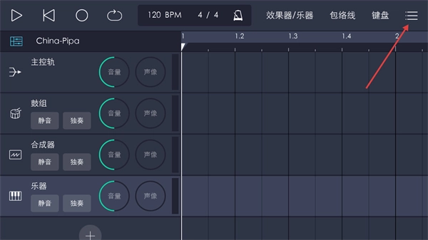 2、在电音编辑界面中,点击右上角的菜单按钮,展开功能列表。