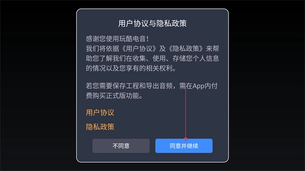 1、当弹出【用户协议与隐私政策】窗口时,点击【同意并继续】按钮即可进入应用。