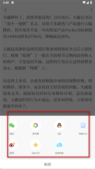 4、在弹出的分享选项里,挑选你想要分享的平台来完成分享操作。