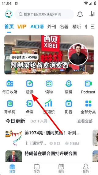 1、在软件首页,点击题源,进入全部分类页面。