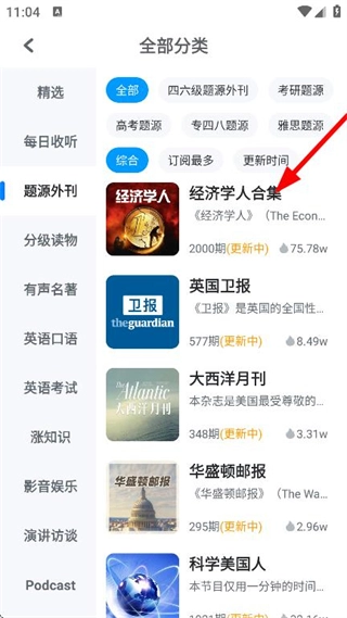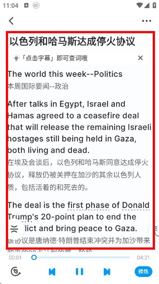 3、在经济学人合集详情页,点击想要学习的文章,即可进入该文章的学习页面。