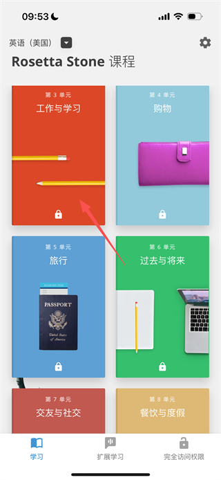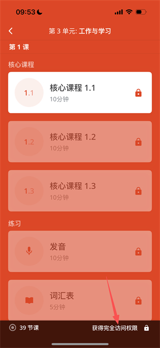 2、在单元课程列表页面,点击“获得完全访问权限”选项,进入购买页面。