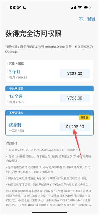 3、进入订阅购买页面后,选定想要的套餐,就能完成课程的购买流程了。