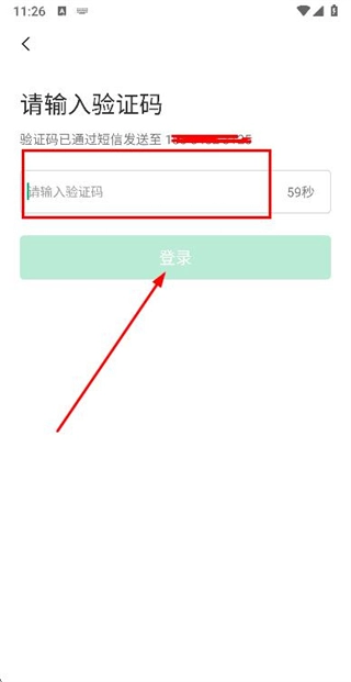 3、在验证码输入框内填入收到的验证码,点击登录按钮以完成账号登录流程。