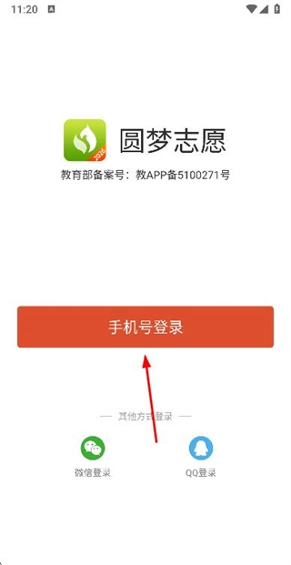 1、进入圆梦志愿点击手机号登录,进入登录页面。