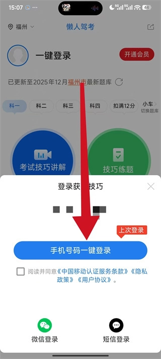3、当登录选项窗口弹出后,先勾选相关协议,接着点击手机号码一键登录按钮完成操作。