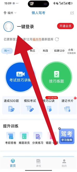 2、在应用主页面上方,找到一键登录并点击。