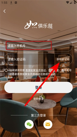 把收到的短信验证码输入到验证码栏,勾选相关协议后,点击登录按钮就能完成账号登录操作。