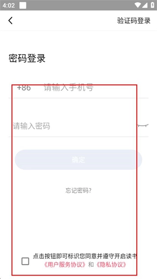 4、在密码登录页面,填写信息并勾选协议后,点击确定按钮即可完成账号登录。