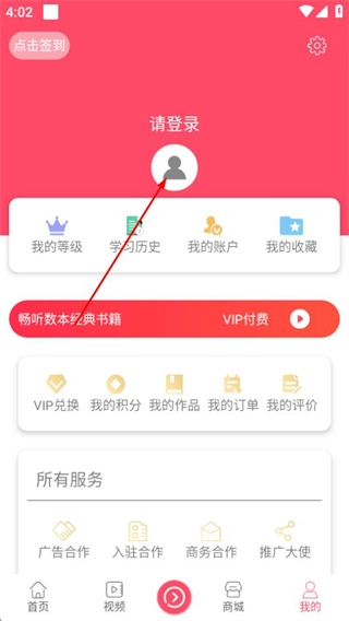 1、进入开启读书后,点击底部的我的选项,可进入个人中心页面。