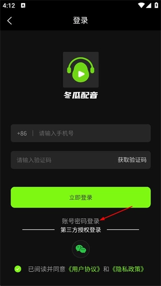 3、在登录页面,点击账号密码登录选项,切换到账号密码登录界面。