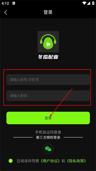 4、在账号密码登录界面,填写手机号和密码,点击登录按钮完成登录。
