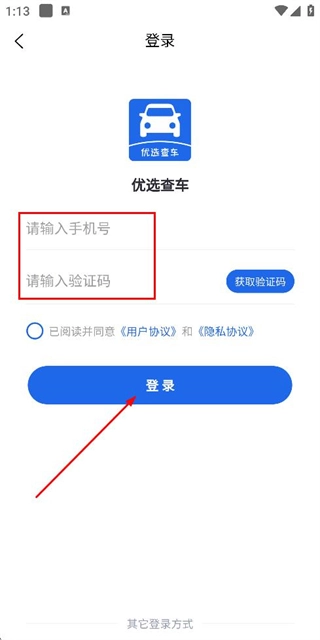 3、在登录页面填写手机号和验证码,勾选协议后,点击登录完成账号登录操作。