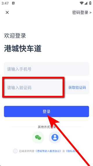 4、在“请输入验证码”栏中填写验证码,随后点击登录按钮,即可完成登录操作。