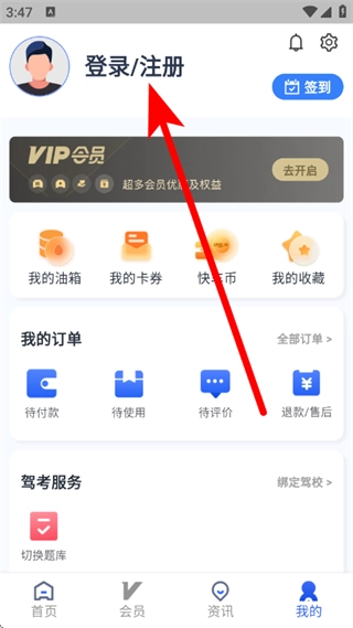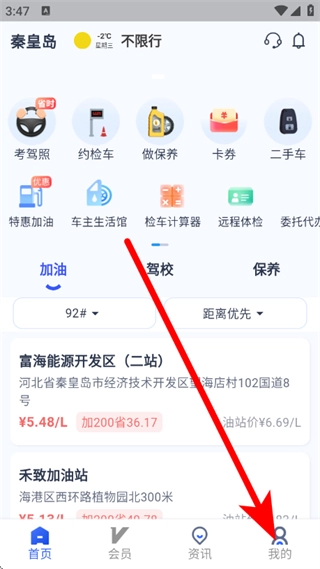 1、打开港城快车道首页后,点击页面底部的“我的”选项,即可进入个人中心页面。