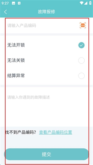 3、进入故障报修页面后,填写相关内容,点击提交按钮就能完成报修流程。