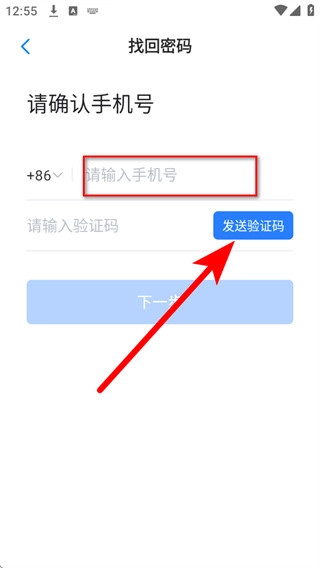 3、在找回密码页面的手机号输入框中填写与账号绑定的手机号,然后点击“发送验证码”按钮。