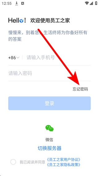 1、进入员工之家后,会弹出一个弹窗,点击“同意并继续”按钮,即可进入登录界面。