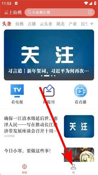 1、在云上仙桃首页,点击底部我,进入个人页面。