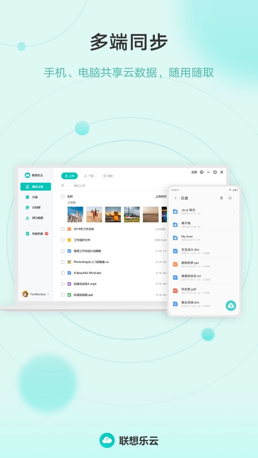 多端协同:可将电脑文档存云端,手机随用随取;也可将手机照片传云端,通过电脑
