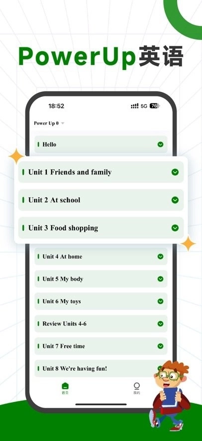 【原声听读】PowerUp0至PowerUp3的所有级别均已完成更新,同时配备了中英双语文本。通过聆听原声内容,学习实用口语,轻松掌握原版的地道发音。