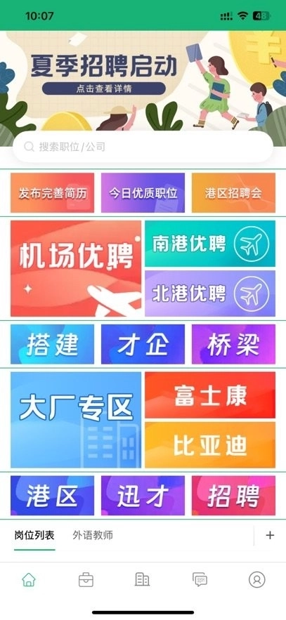 支持用户通过分类专项查找岗位,帮助用户快速定位适合的工作,并且可以直接在线投递简历。