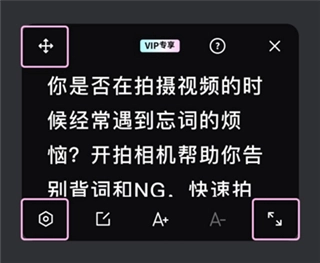 1、点击提词器顶部或左上角图标即可拖动任意位置,点击右下角图标即可调整提词器展示大小长宽度。