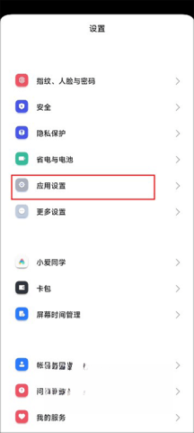 第一步,打开手机的设置选项;接着,进入到应用设置界面。