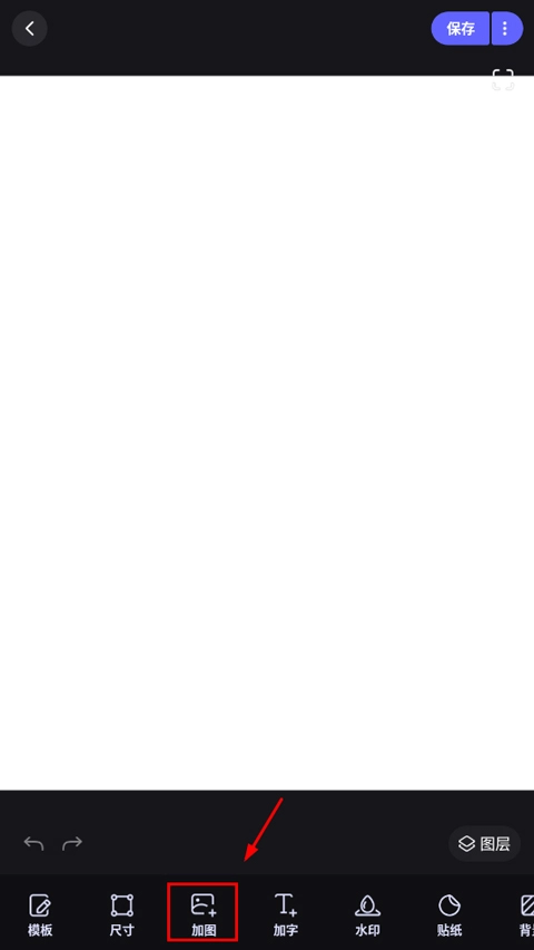 3、创建好画布后,点击加图;
