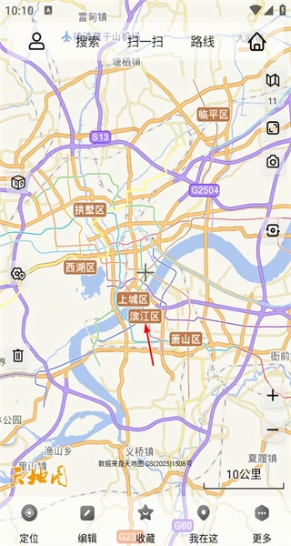 4、切换后进入杭州地图界面,展示上城区等区域地图,开始查看该城市的地图详情。