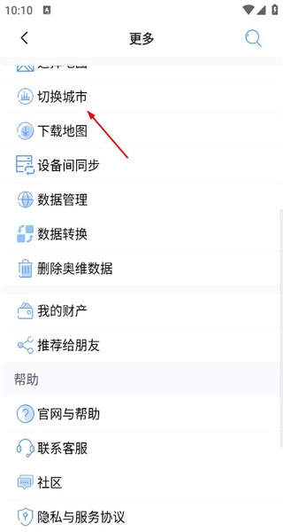 2、在功能列表页面,看到切换城市选项,点击切换城市,进入城市选择界面。