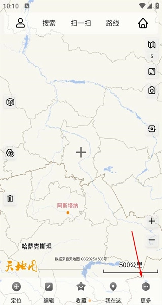 1、打开软件后,进入主界面,呈现哈萨克斯坦区域地图,点击右下角更多,进入功能列表页面。